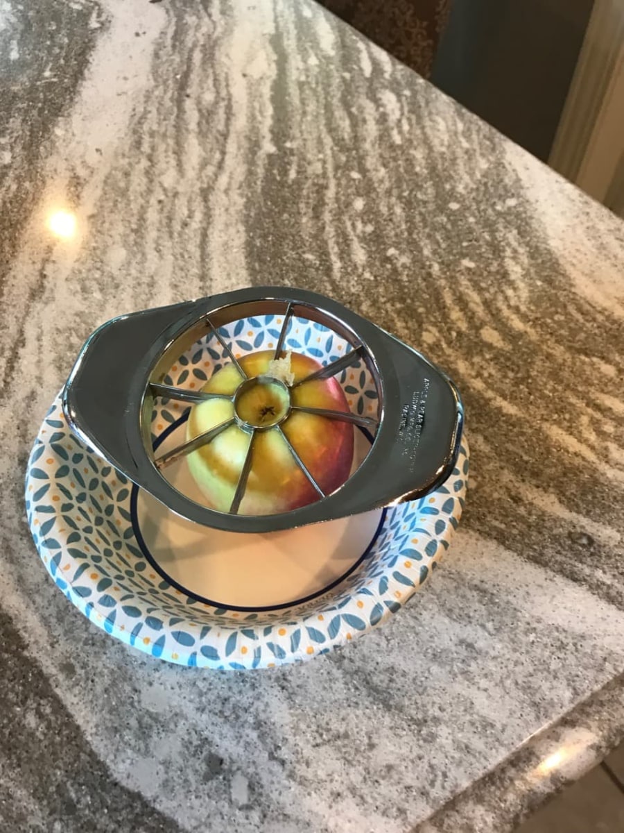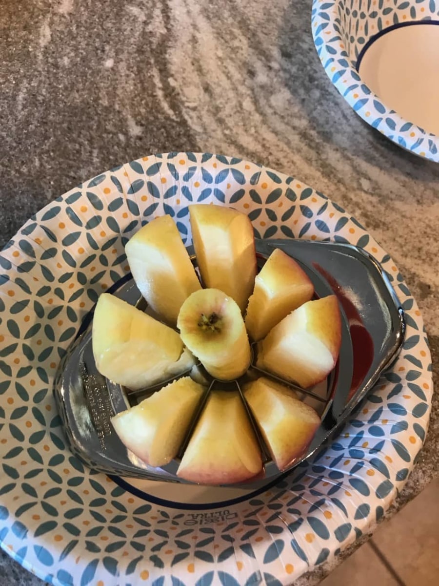Anyway, today as I was slicing the apples for them for lunch, I was using the Apple Corer/Slicer, and I remembered a great tip. You know how the cores of apples are rarely straight because not all apples are the perfect appley shape? (Appley is a word, right?) Well, I found out that if you turn the apple upside down, it’s easier to see what angle the core is, and it’s much easier to get the whole core out. Awesome, right? It’s worked well for our family, because if my kids accidentally got a hull or another part of the core in one of their apple slices they may never eat them again! Okay that’s a slight exaggeration, but no one really wants an apple hull in their apple slices.