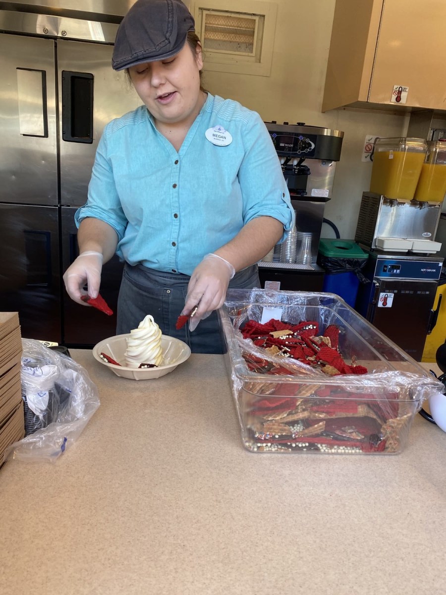 Kelly trying out the sparkly Cinderella Dole Whip