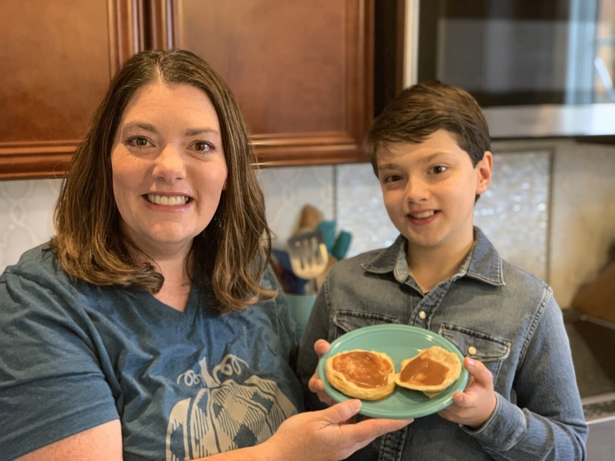 My boys both have food allergies, so sometimes coming up with new things for breakfast is a struggle. My oldest has a severe egg allergy, and my youngest has to eat Gluten-Free. They do like toast and usually eat honey butter on it, but in the Fall they love to put fresh Apple Butter on top! We add cinnamon and cloves, and it ends up tasting pretty similar to Cracker Barrel’s apple butter. My oldest loves it on biscuits and my youngest eats it on his favorite GF Pumpkin Waffles.