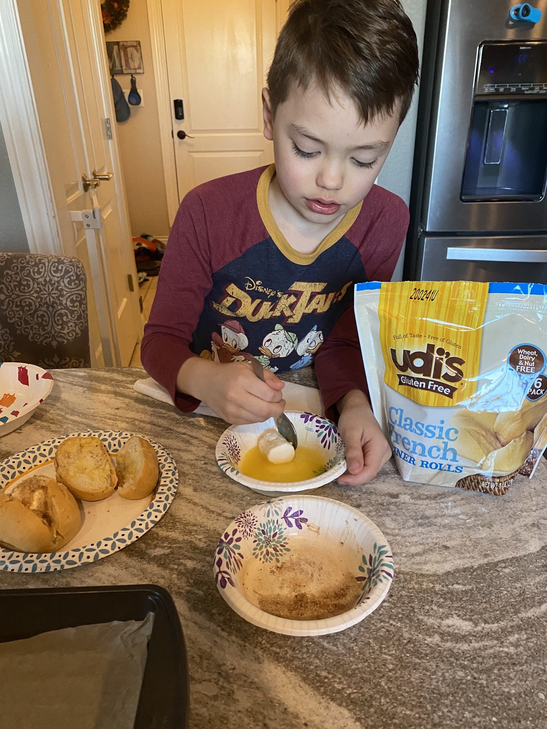 I will post the recipes below for the regular and the gluten-free version of these rolls, but first I’ll list the ingredients you will need for these simple Resurrection Rolls this Easter. We prepared each of these versions separately, but only the rolls are different. We are always careful to wash our hands and surfaces in between and use different pans and utensils to be sure we don’t contaminate anything with gluten for my son who is gluten-free. If you are making both versions for your Easter celebration, I would recommend doing the Gluten-free version first.