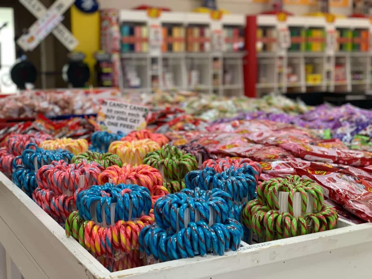 After the stop at the Jelly Belly Station, guests can board the train for a 25-minute tour through the Jelly Belly Warehouse. On the tour, you will see how they make Jelly Bellys through a 4K/HD video. They also have equipment on display during the tour, as well as art and fashion made out of Jelly Belly products. They don’t allow photos to be taken once the tour starts, so I don’t have specific pictures of that, but as you can see from my other pictures, there is lots of candy and lots of fun! The tour ends with a free sample of Jelly Bellys, and you’ll end up exiting through the gift shop. I think the sample is a generous size. My kids and relatives love to go on the Jelly Belly Factory Tour at least once a year.