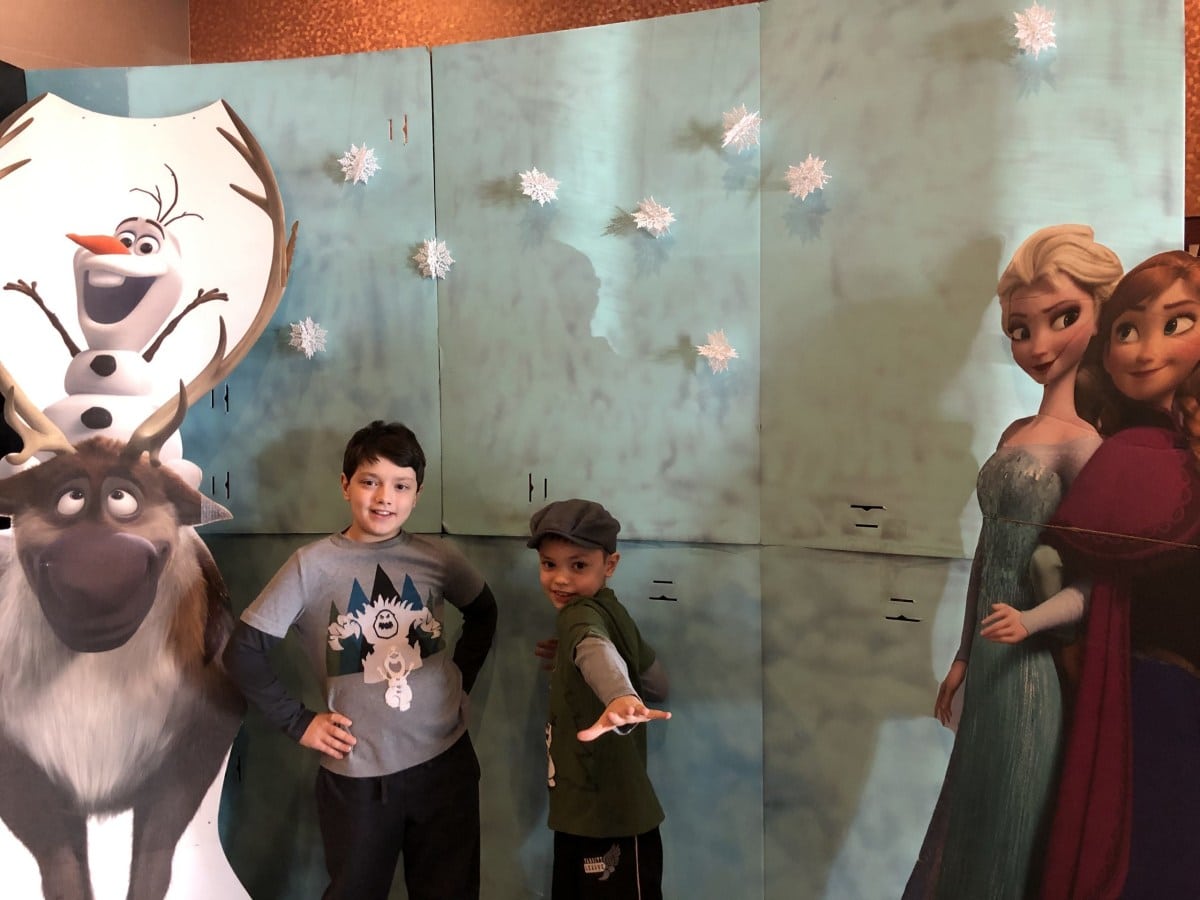Mom tip: If you have a young child or a child who tends to be sensitive to intense movie scenes you may want to let them bring a stuffed animal along to hug. I wish I had let my youngest bring his stuffed Olaf along, to hug during moments he might have deemed scary. However, he was fine during Frozen 2, and especially after he had seen the whole movie and realized that everything works together for good in the end. As Olaf sings in the movie, “This will all make sense when I’m older…”, apparently, even when your kids are just a few minutes older at the end of the movie. There were several young children in our movie theater, and no one was crying, so don’t worry. It is a great movie for the whole family. If you do have young children, we would suggest trying to go during the weekday, and early morning or afternoon times. These were always the best movies times for us when we had young children. Usually, people don’t mind as much if they make noise, and we usually didn’t have any problems with my kids sitting still as long as they had something to drink and a snack. This movie also has lots of scenes with music which tend to hold the attention of little ones more too.