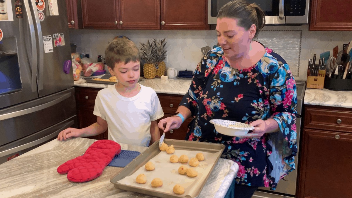 Ethan and I making our super-simple Brazi Bites cheese rolls. Just place and bake.