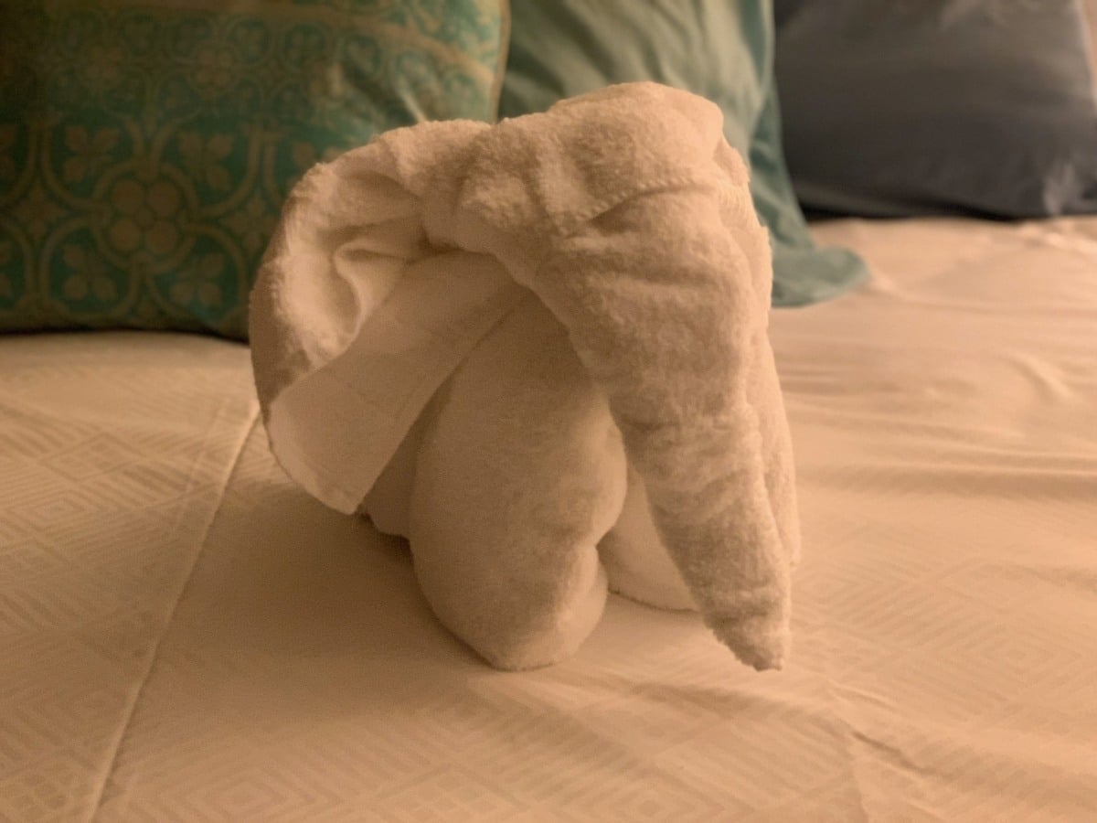 Overall we had a roaring good time staying at Animal Kingdom Lodge- Kidani Village. Everyone is so friendly from the Greeters, to the Valet, to the Chefs and Mousekeeping. They all made sure our stay was top notch. The experience of the Savannah View and waking up to see animals such as giraffes and zebras every morning was the gift of a lifetime. I would highly recommend a stay here if you have kids who love animals in your family. I loved how amazingly themed this hotel is too. You feel like you have been transported to an African Safari for only a fraction of what a real one would cost. We did leave an extra tip for Mousekeeping one day, and when we came back we found an elephant made of towels on our bed! This was a special magical touch for my boys. Mousekeeping is sometimes very busy, so they can’t always do it, but we are glad they were able to do it during our stay. We had a very magical stay at Animal Kingdom Lodge Kidani Village. It was wild and an amazing amount of fun!