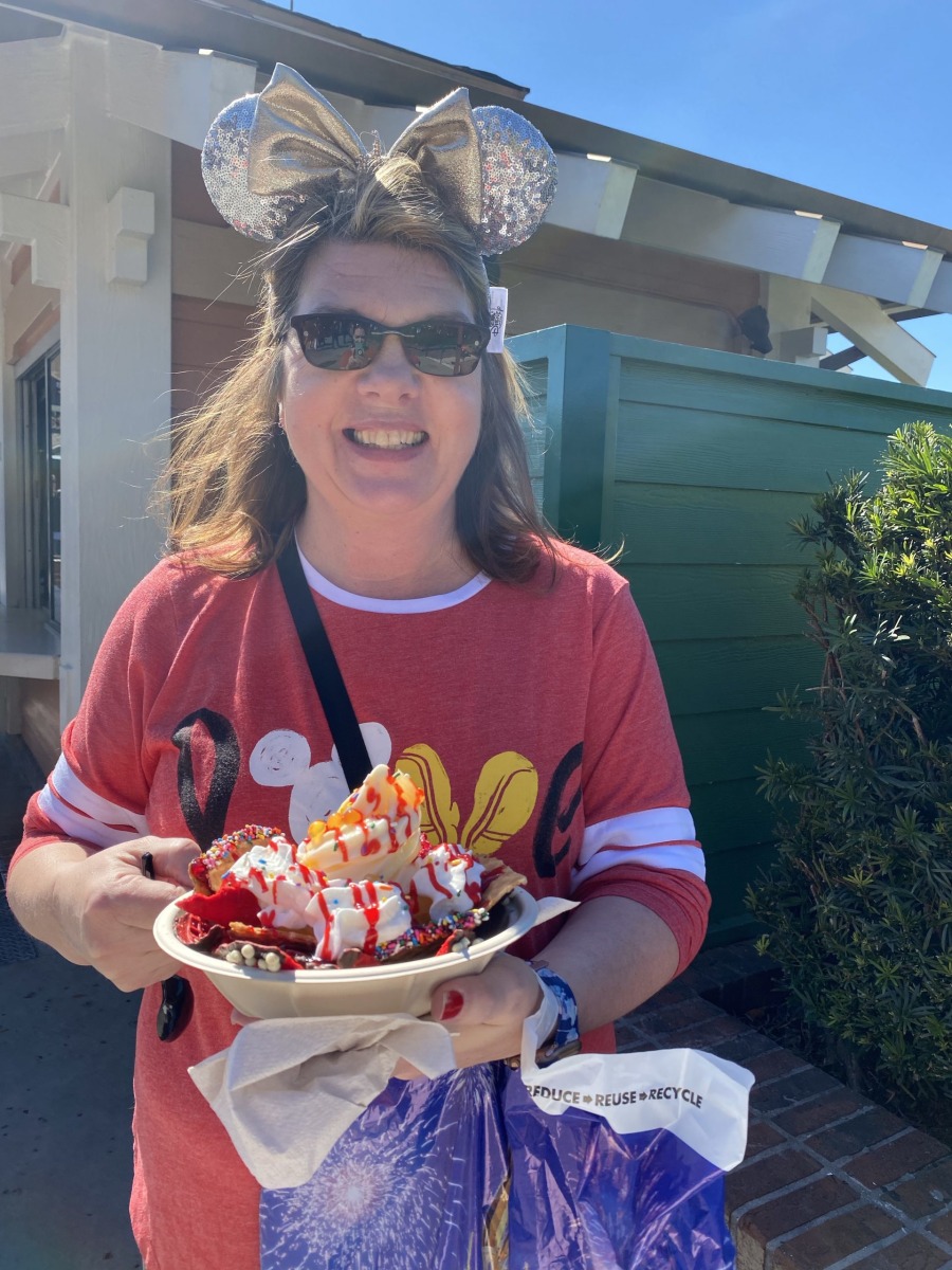 By the way, did you know that they now have Dole whips at Disney Springs!?! We found them at The Marketplace. They also had Dole Whip Nachos that my MIL had to try with pineapple and strawberries! She loves strawberries too, so she thought it was great! The “nachos” were made from waffle cone pieces. They also had a Blue Raspberry Frozen Slushy decorated with Olaf on top or a special Olaf cup with either a light-up Elsa or Olaf toy. They also have a Red Raspberry Lemonade Minute Maid Slushy available too. They sold Pineapple, Vanilla, or Swirl Dole Whips at The Marketplace. It was quite a treat to find them at Disney Springs. We also had to go over to The Polynesian Resort after Disney Springs to try the new Cinderella Midnight Dole Whip treat that will be available until February to celebrate Cinderella’s 70th Anniversary! It was a pretty treat complete with glitter and adorned with a white chocolate clock perfect for any little princess. Just a side note; the Cinderella Dole Whip is not gluten-free due to the white chocolate covered crisp rice beads. You can ask for it without the beads, but, please, always check with a chef if you have food allergies. After all of that fun on our tour of Dole Whips, we headed back to Kidani Village to drop Grandma Kelly off to catch her Magical or Tragical Express back to the airport, and we picked up our luggage and cooler from Bell Services to begin our journey home.